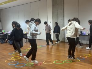 また、風船やフープなど身近な遊びをテーマにグループワークを実施しました。実際の子どもを思い浮かべながら、どの力にアプローチするのかを考え、発表し合いました。
