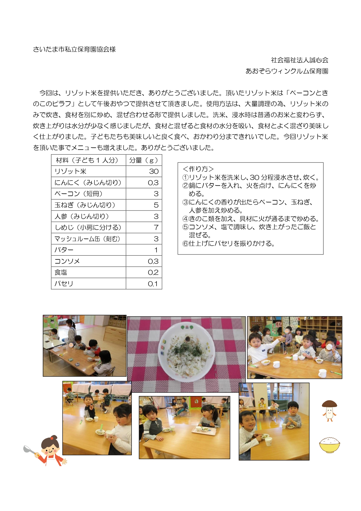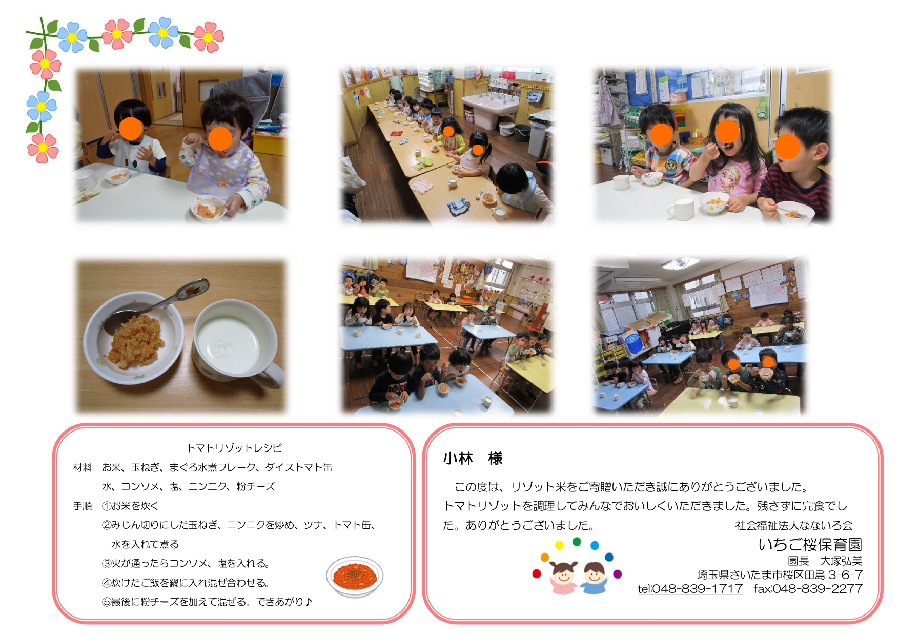 今回はその内の4園のお礼状を掲載いたします。